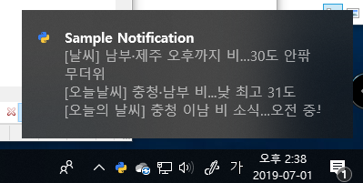 사용 패키지 : ToastNotifier( window toast 알림 띄우기 )